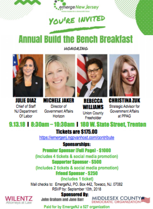 Fundraiser to support women running for office in NJ. Click to RSVP (by Sept 10)